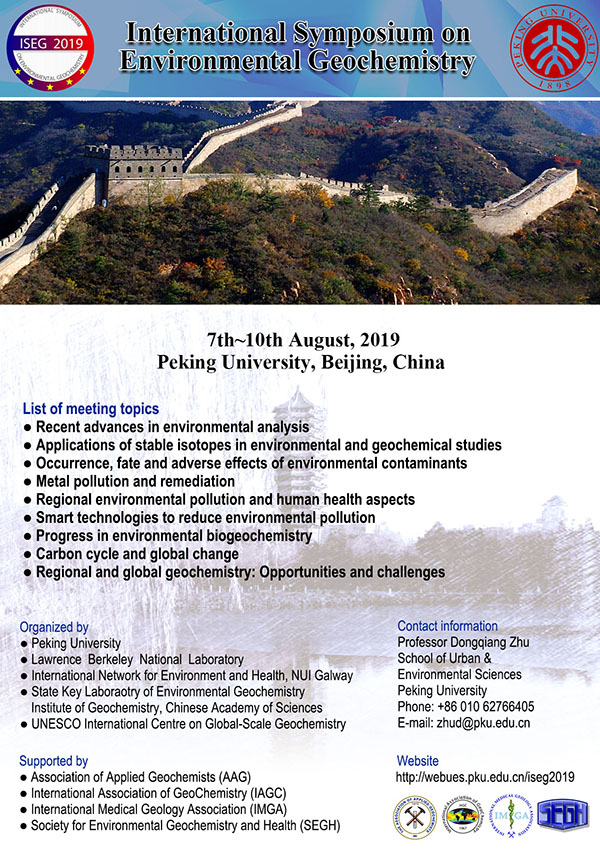 第十一届环境地球化学国际研讨会将于2019年8月7日至10日在北京大学英杰交流中心举行,k8凯发集团作为主办方,美国伯克利-劳伦斯国家实验室、中国科学院环境地球化学国家重点实验室和爱尔兰国立大学(高威)瑞恩研究所地理信息系统研究中心作为合办方,来自斯坦福大学、普林斯顿大学等国内外顶级院校相关领域著名学者前来参会,开展学术交流和科研探讨,其中包括5位知名院士。本届会议聚焦环境地球化学前沿研究领域,涵盖污染物分析、过程行为及其生态毒理效应,紧扣环境健康、碳循环及全球变化等重要研究方向。